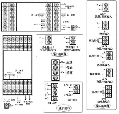 過(guò)熱蒸汽帶溫度壓力補(bǔ)償?shù)?位流量積算控制儀,流量輸入類(lèi)型為4~20mA,壓力補(bǔ)償輸入類(lèi)型為1~5V,溫度補(bǔ)償輸入類(lèi)型為熱電偶K型,繼電器控制輸出,帶RS-485通訊,帶流量定量到控制報(bào)警輸出,帶下限報(bào)警輸出,帶DC24V饋電輸出。 |