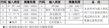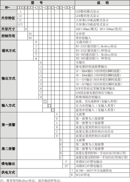 智能流量積算控制儀型譜表