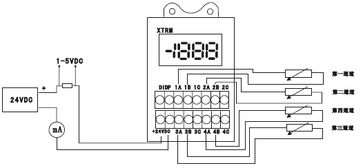 4.在正常工作情況下,儀表同時(shí)對四路溫度進(jìn)行測量,但僅顯示和輸出溫度zui高的一路信號。